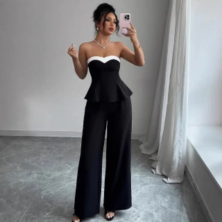 Women’s Summer Shoulder-Bared Vest & Wide-Leg Pants Set | Vacation Outfit | Chic Two-Piece Spring Fashion Ensemble