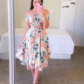 Women’s Summer Off-Shoulder Floral Dress | Elegant Short Sleeve Casual Dress | Sexy Irregular Elastic Vestido de Mujer