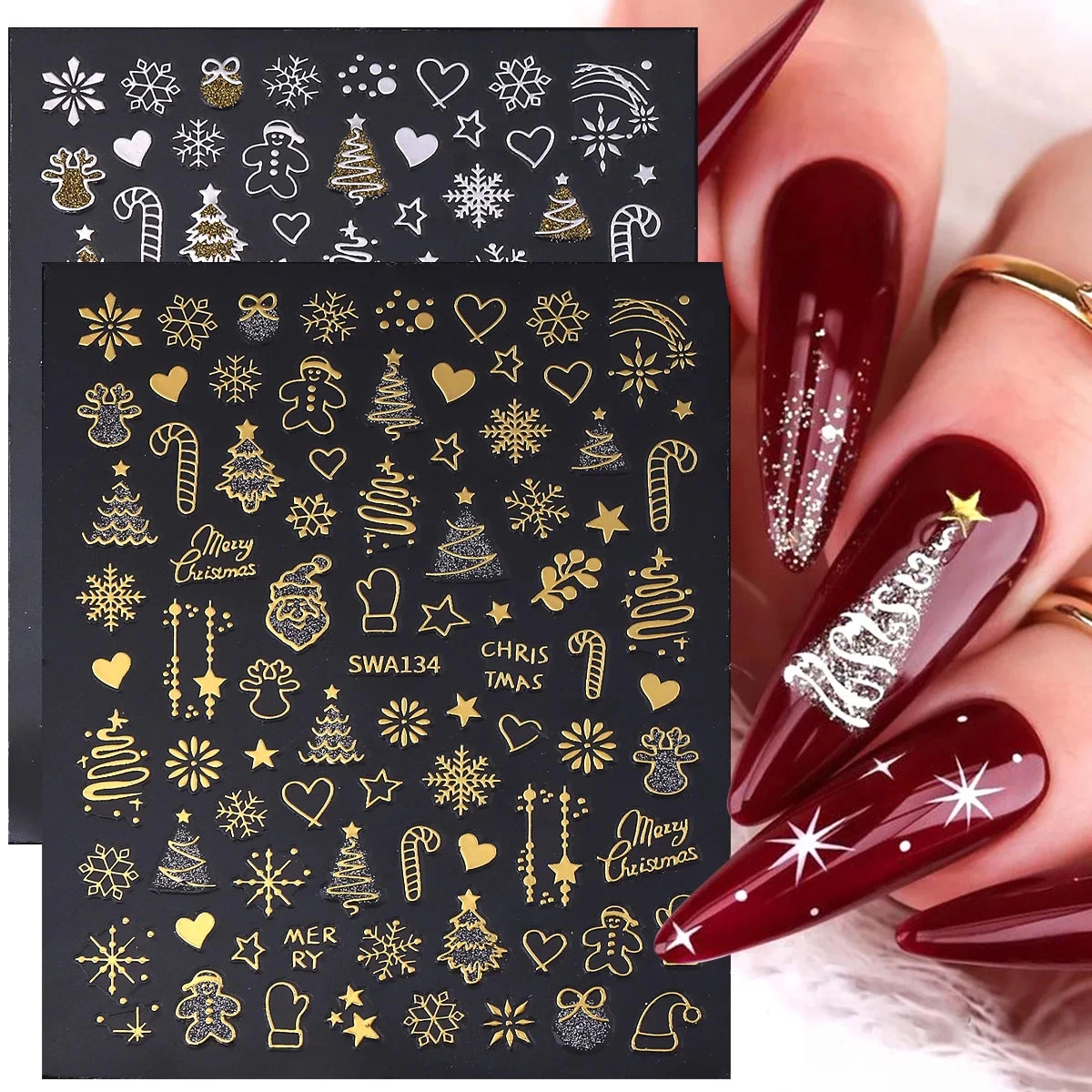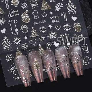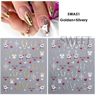 Get your nails holiday-ready with these 2pcs Gold & Silver Christmas 3D Nail Stickers! Each sheet features reflective glitter designs including Xmas trees, snowflakes, gingerbread men, stars, and more — perfect for creating a dazzling festive or winter manicure. Easy to apply and long-lasting, these adhesive nail decals stick beautifully to gel, acrylic, or natural nails. Ideal for Christmas parties, holiday nail art, or DIY salon use.